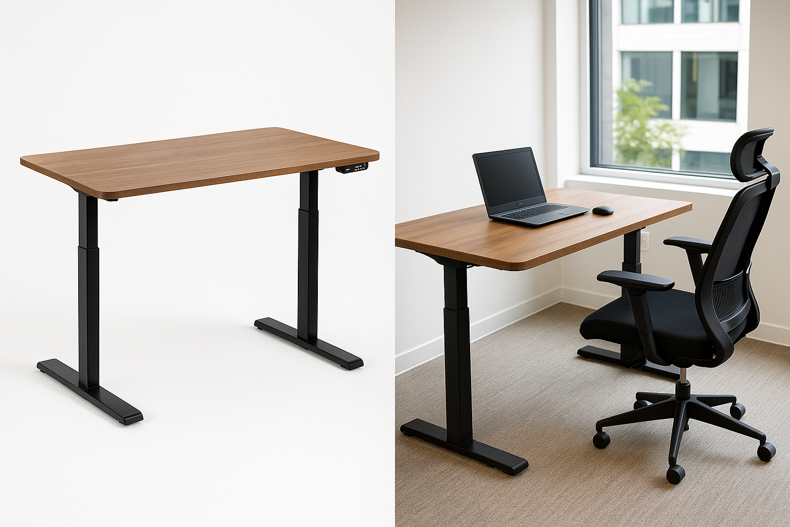 Ergonomisch zit-sta bureau met elektrisch verstelbaar frame en stevig blad van 120×70 cm. Ideaal voor afwisselend zitten en staan.
